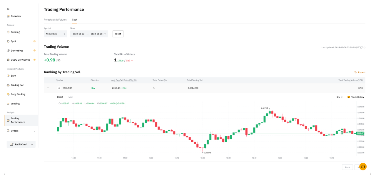 As of now, trading performance data for Spot, Perpetual, Futures and Options contracts is available.