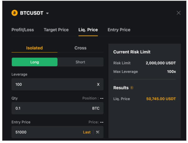 For normal derivatives trading, Trader A’s position will likely be liquidated at 50,745 USDT.