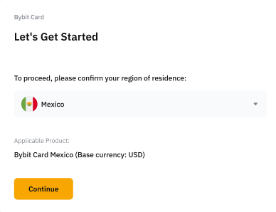Note: Bybit Card is currently only available in limited countries. If your selected country of residence is not within the supported countries, we will register your interest now and inform you when the Bybit Card is coming to your country.