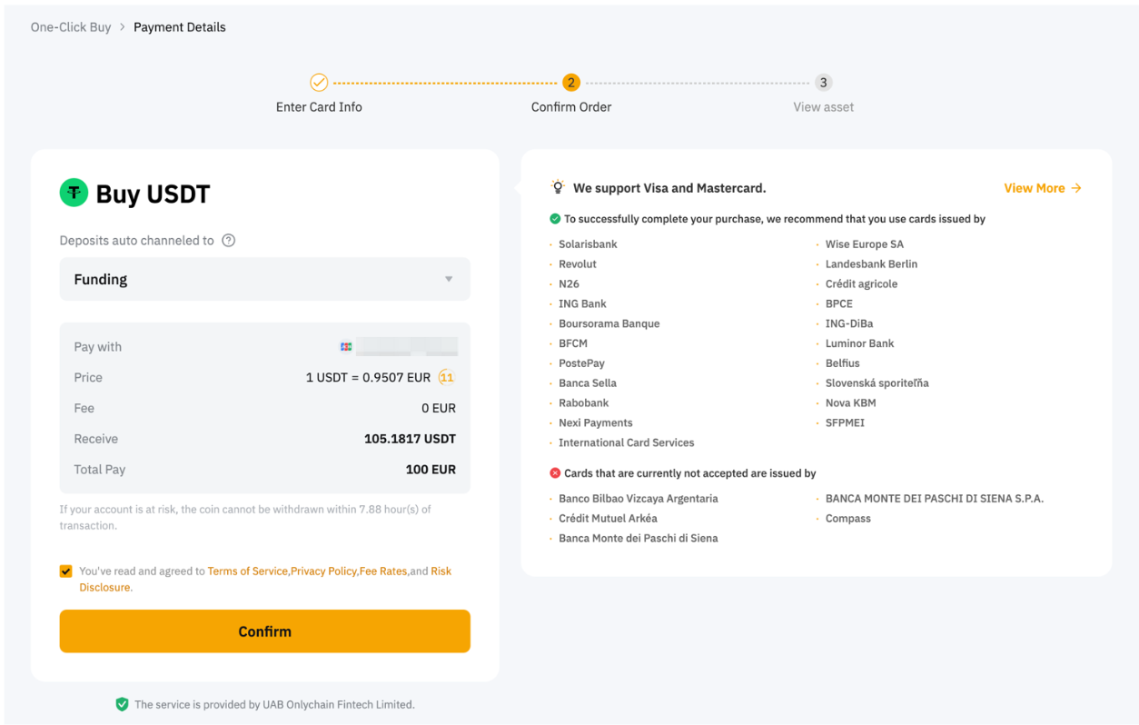 4. Pilih Kartu Bank sebagai detail pembayaran. Anda akan melihat estimasi nilai tukar untuk setiap metode pembelian yang tersedia (diperbaharui tiap 30 detik).
