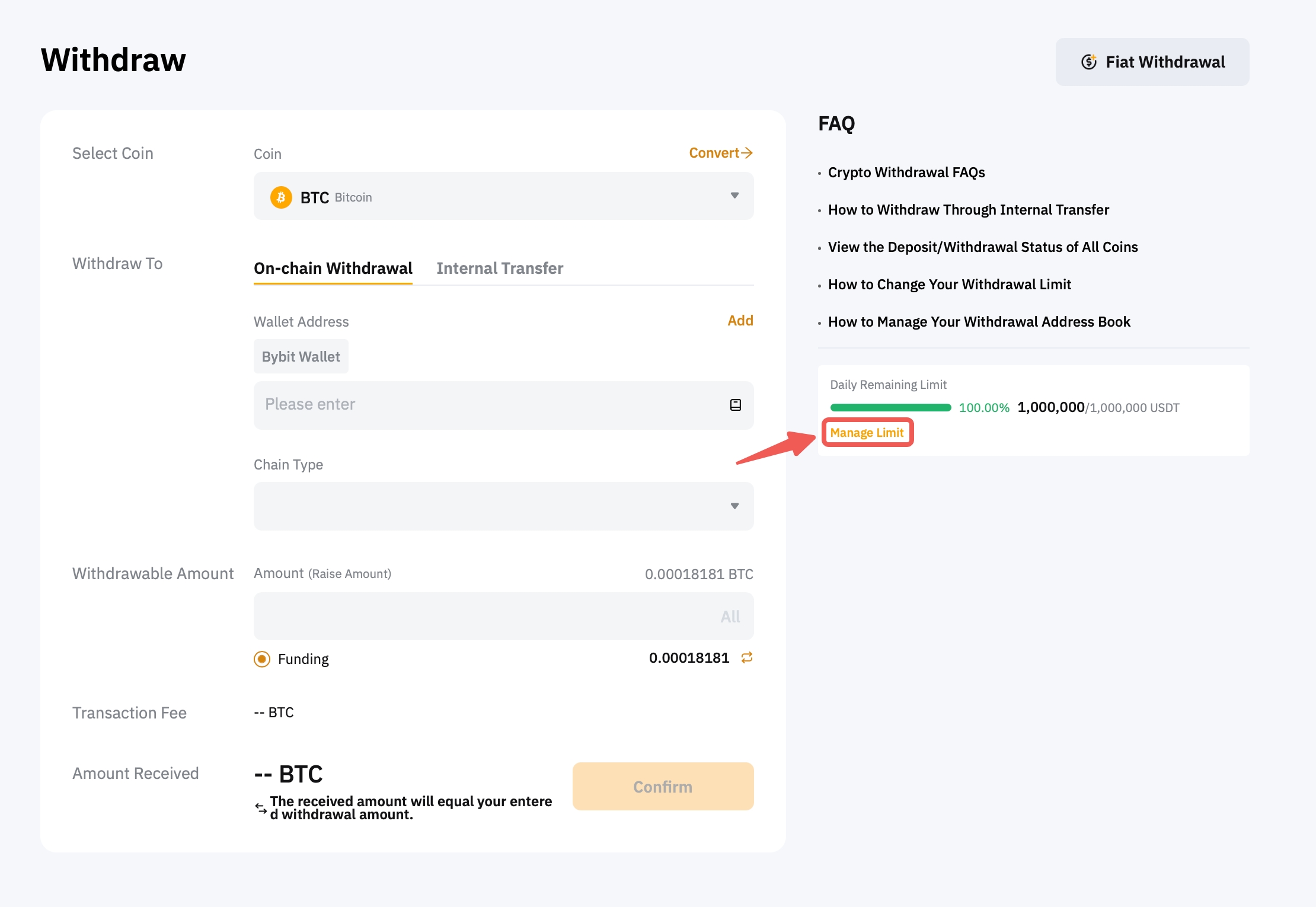Bybit memungkinkan pengguna untuk mengelola Batas Penarikan Kripto harian dan bulanan mereka dalam ketentuan batasan penarikan maksimum tersedia berdasarkan level VIP dan Verifikasi Identitas. Untuk melihat batasan penarikan untuk tiap level VIP dan Verifikasi Identitas, silakan kunjungi tautan ini.