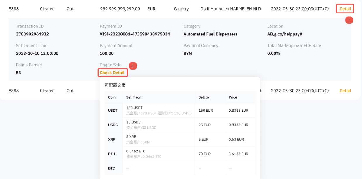 Jika transaksi Kartu Bybit Anda didanai dengan kripto, Anda dapat menemukan detail pertukaran dengan memperluas detail pesanan dan mengeklik Detail Cek di bawah Jual Kripto.
