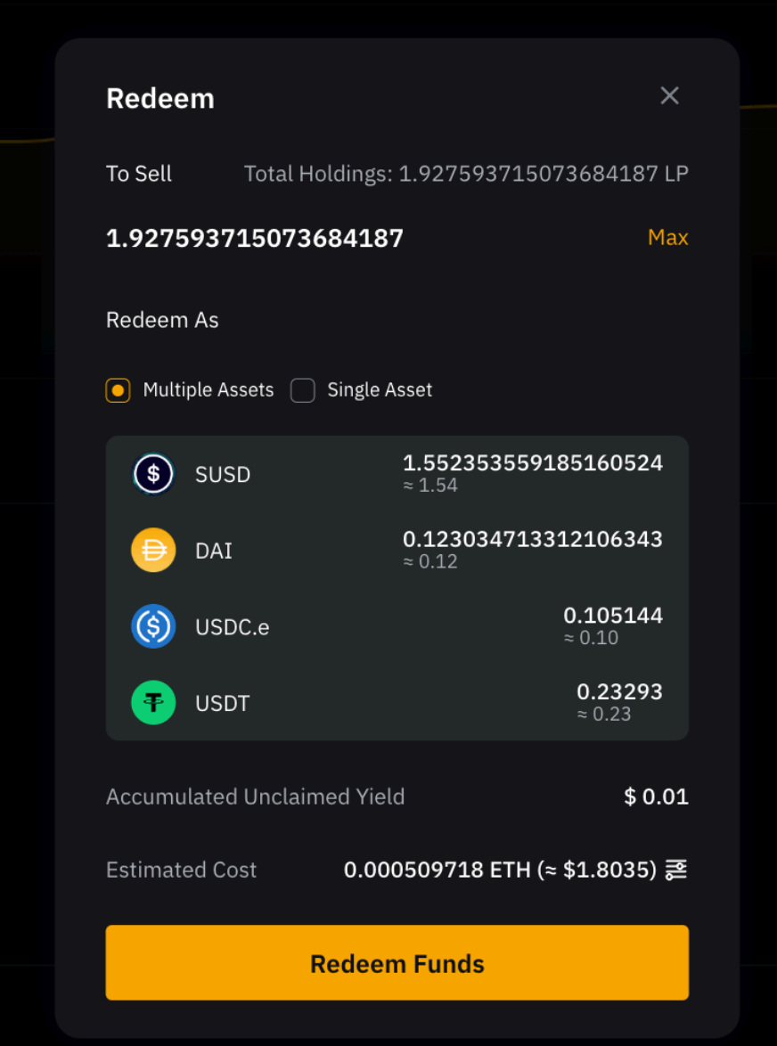 Langkah 4: Konfirmasi detail penebusan, yaitu jumlah dan token yang diterima, dengan mengeklik Konfirmasi.