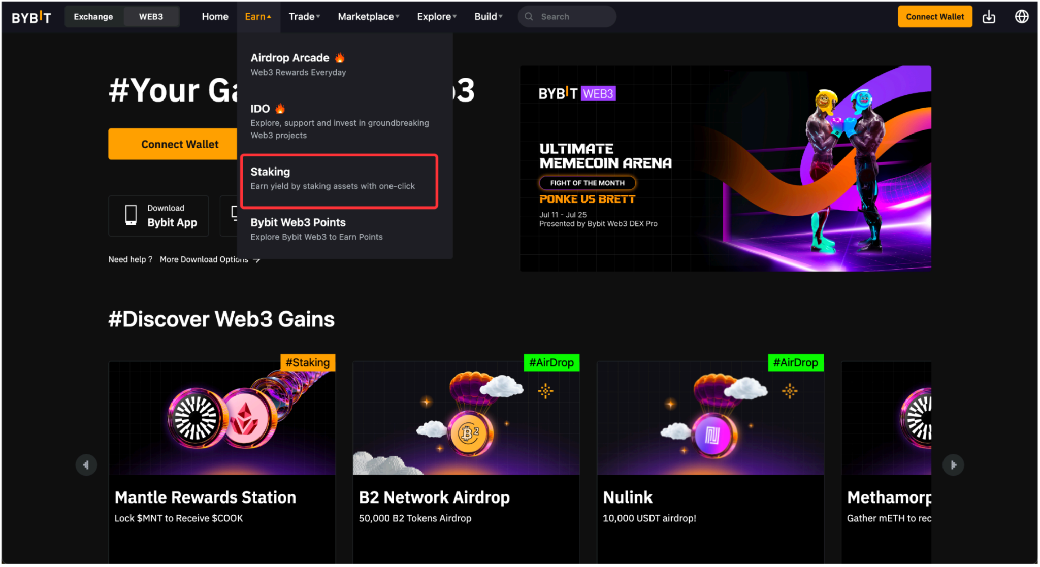 Langkah 1: Di beranda, buka Wallet → Dapatkan → Staking.