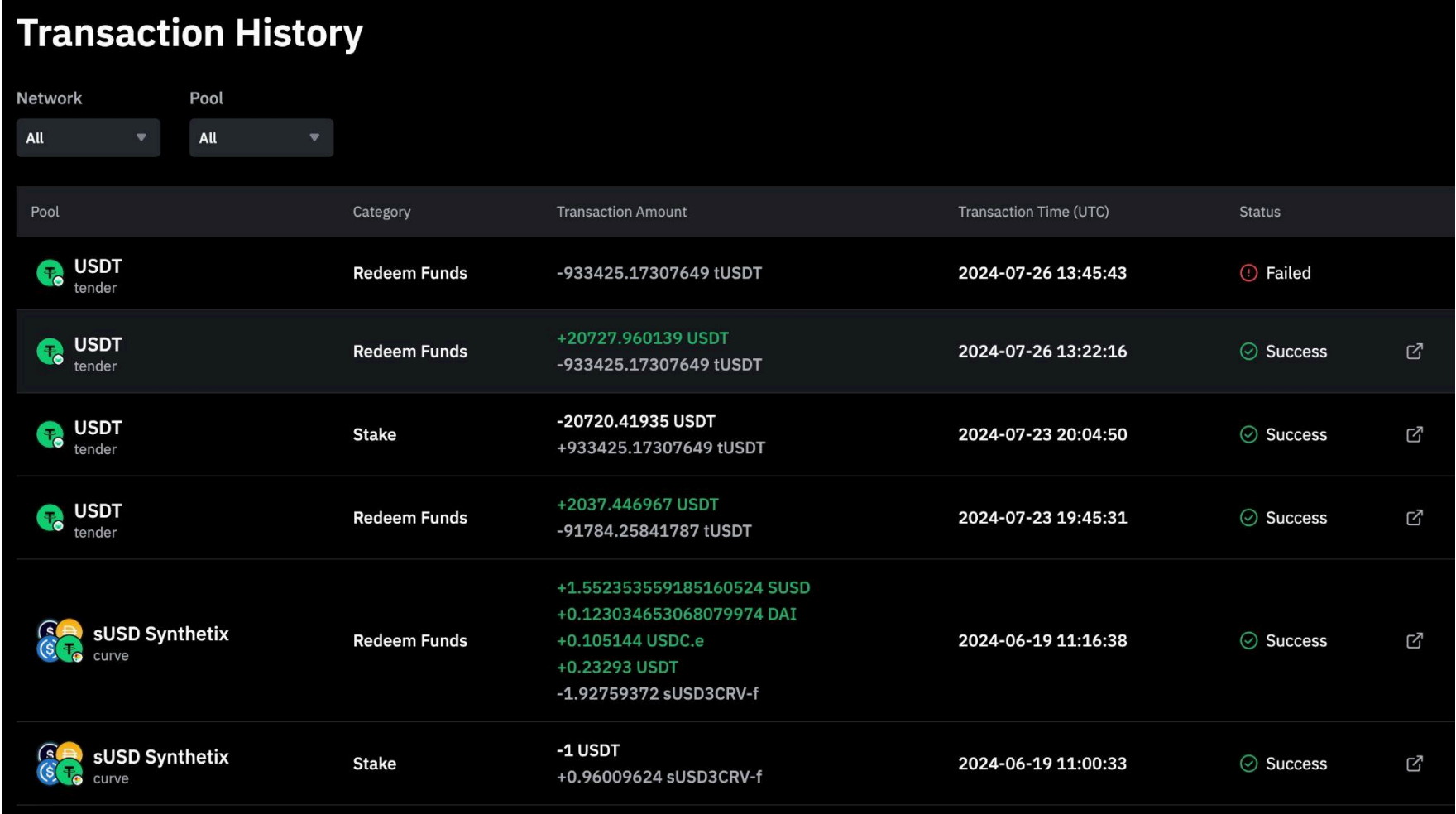 Setelah staking berhasil, detail transaksi akan ditampilkan dalam riwayat transaksi.