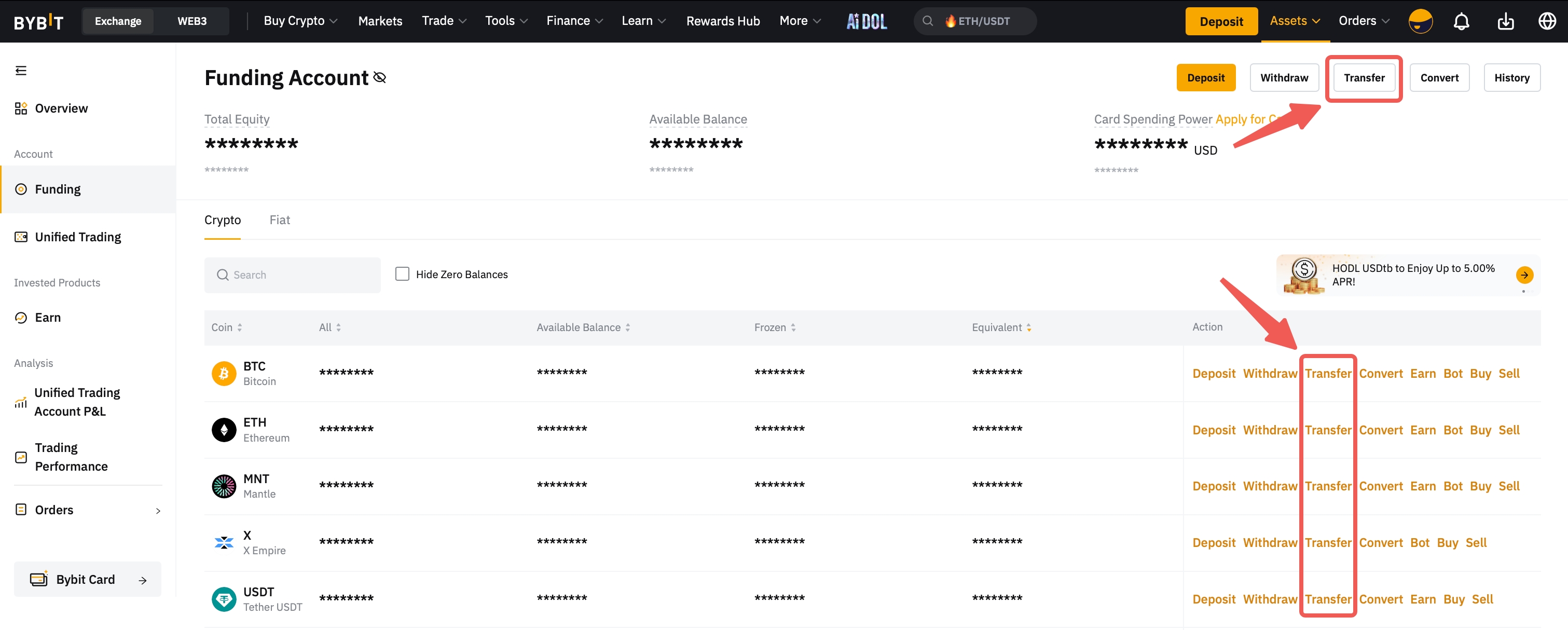 Berikut adalah panduan terperinci untuk membantu Anda mentransfer aset antara Pendanaan dan Akun Perdagangan Terpadu di Bybit.