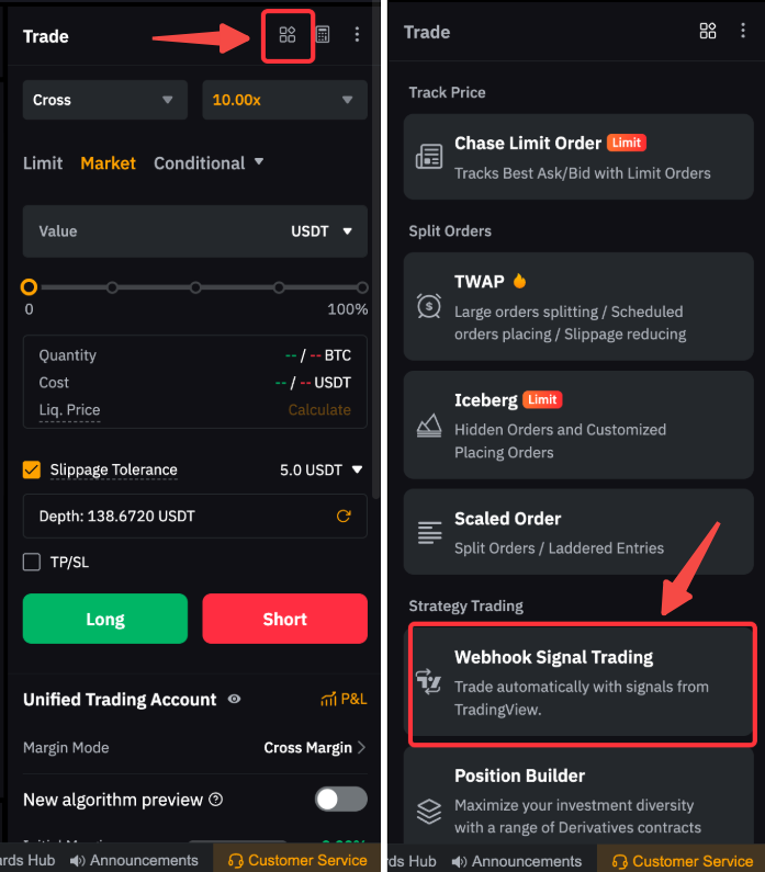 Perdagangan Sinyal Webhook di Bybit adalah alat canggih yang memungkinkan perdagangan otomatis kontrak Perpetual dan Futures menggunakan sinyal dari TradingView. Dengan memanfaatkan fungsi webhook TradingView, trader dapat mengirim permintaan ke URL tertentu setiap kali peringatan dipicu, mengotomatisasi proses perdagangan.