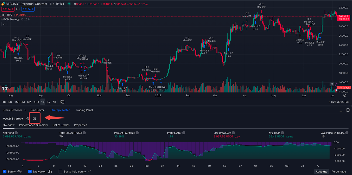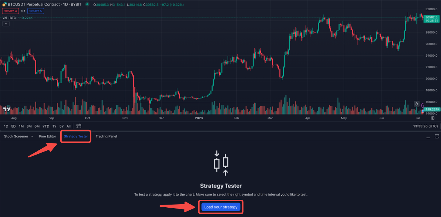 Langkah 2: Pada Laman TradingView, klik Penguji  Strategi untuk memuat strategi Anda.
