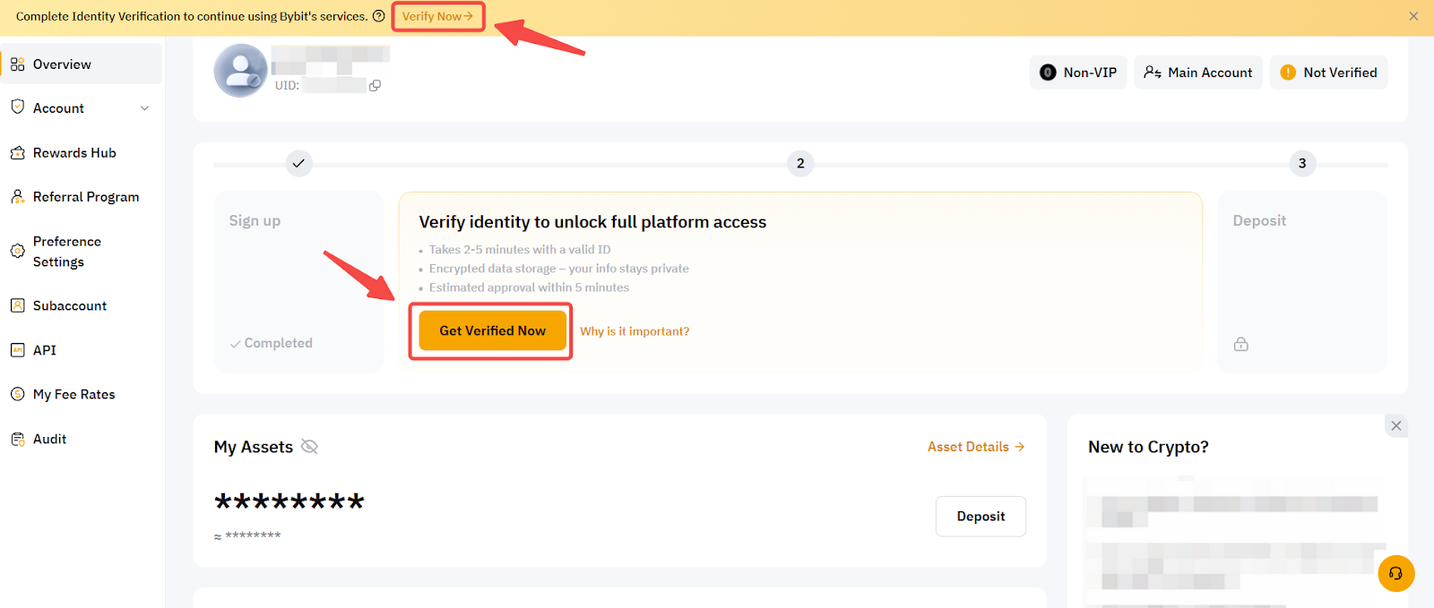 You have successfully registered an account on Bybit! You will be redirected to your Account Dashboard page where you can start to complete your Identity Verification to access all of Bybit’s products and services.