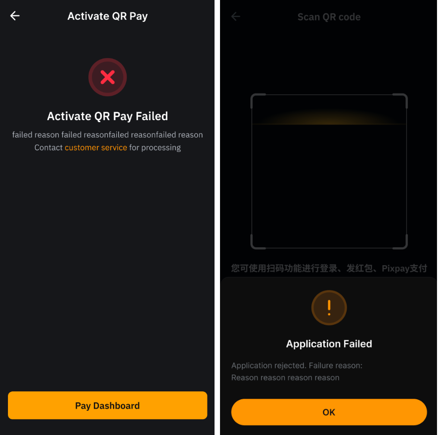 - O código QR não pode ser identificado por nossos parceiros bancários.