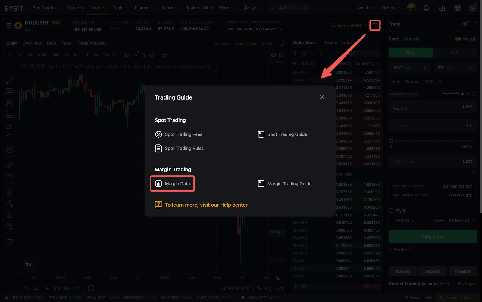 Для Спотовой маржинальной торговли нажмите на Руководство → Данные маржи. Там приведены актуальные процентные ставки. В этом разделе также можно увидеть процентные ставки для разных VIP-уровней.