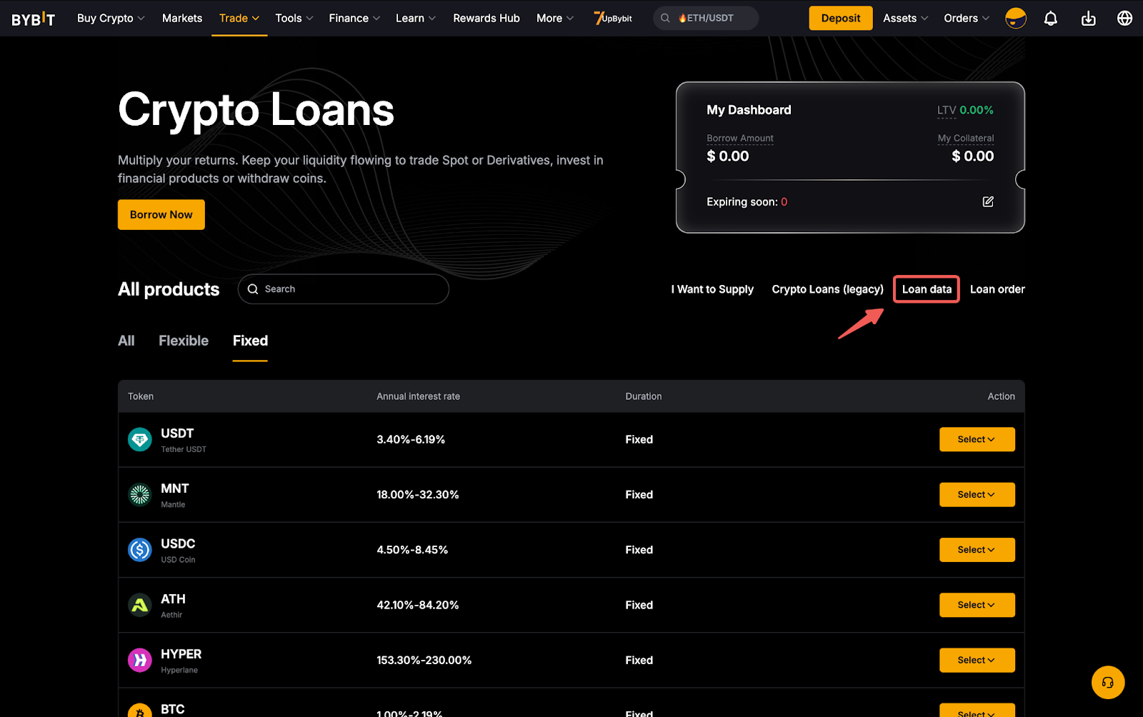 Вы можете найти процентные ставки платформы Bybit во вкладке Кредитование и займы на странице Обзор рынка Bybit.