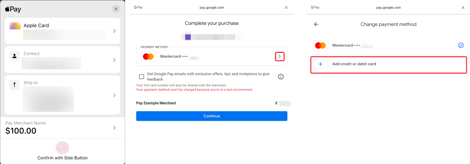 d. Selecione Google Pay/Apple Pay como seu método de pagamento.