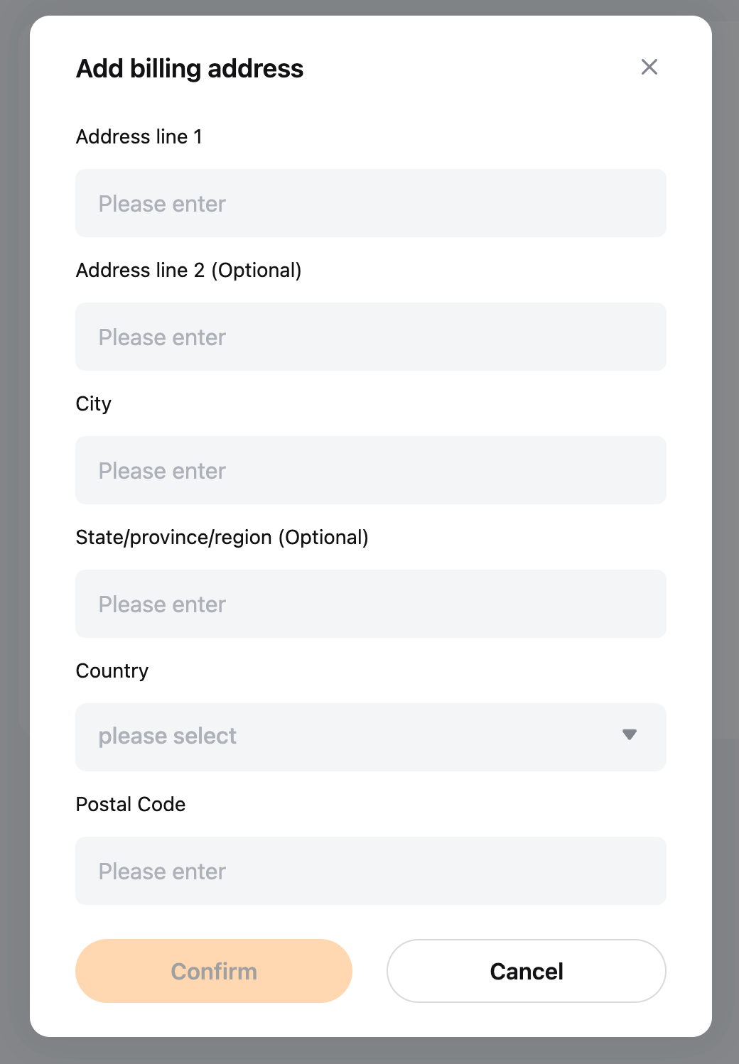 Observação: Certifique-se de selecionar seu país/região antes de inserir os detalhes do cartão, pois o Google Pay/Apple Pay pode exigir formatos específicos.