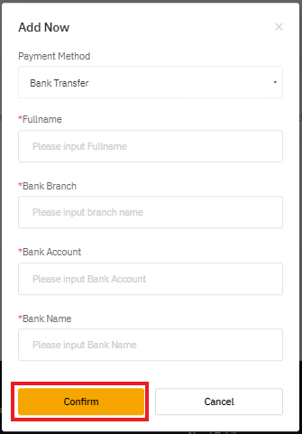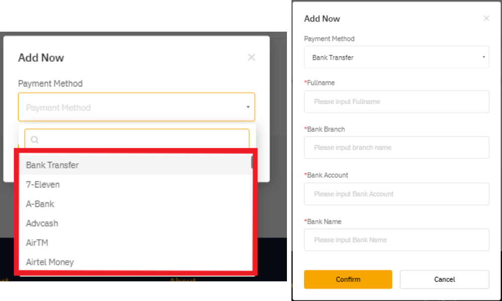 — Ao vender moedas a um anunciante, é essencial garantir que o método de pagamento que você está tentando selecionar corresponde exatamente ao método de pagamento listado para o anunciante selecionado. Por exemplo, se um anunciante publicar um anúncio com Transferência bancária, você deve incluir o método de pagamento Transferência bancária para enviar a ordem com sucesso.