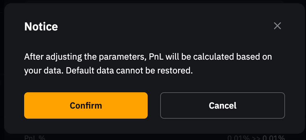 3º passo: Um pop-up de confirmação notificará você de que o P/L e o P/L % serão recalculados com base nos dados atualizados. Você pode visualizar o P/L e o P/L % atualizados clicando em P/L, localizado ao lado de Ativos na parte inferior da página de trading. Os ajustes são irreversíveis. Para continuar, clique em Confirmar.
