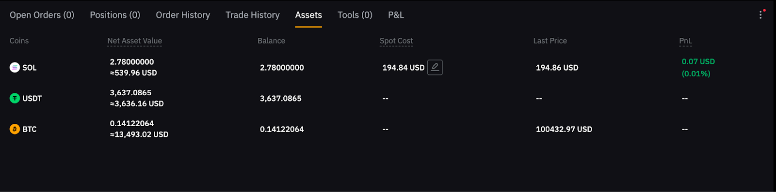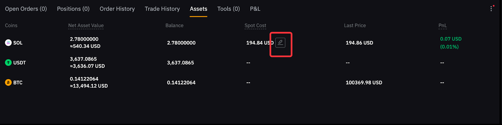 1. O preço de compra é convertido para USDT no cálculo, e o Custo Spot é exibido em USD.