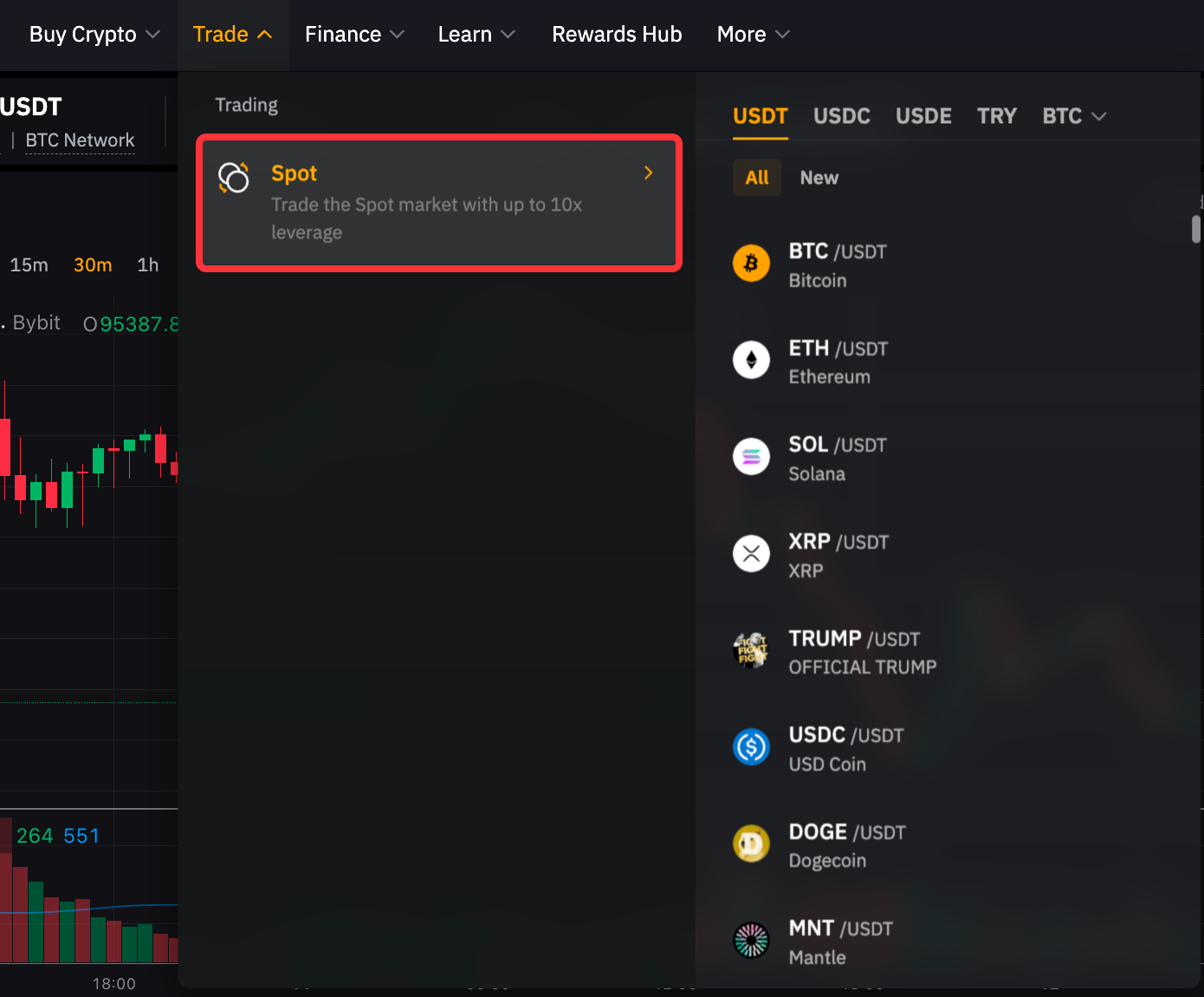 1º passo: Acesse sua conta e clique em Trade → Spot na barra de navegação superior para acessar a página de trading em Spot.