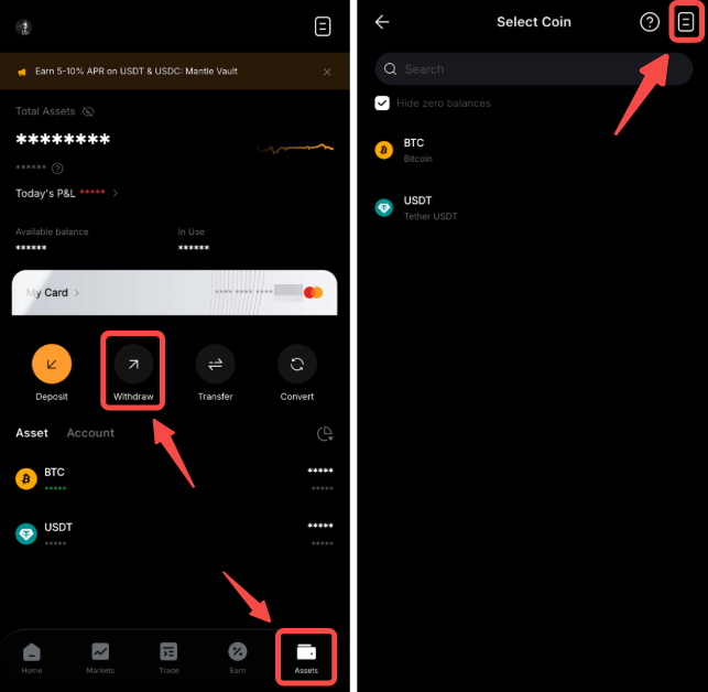 Se sua transação foi feita via Transferência Interna, você pode ver os detalhes da transação navegando para Ativos → Retirar → Histórico de Ativos.