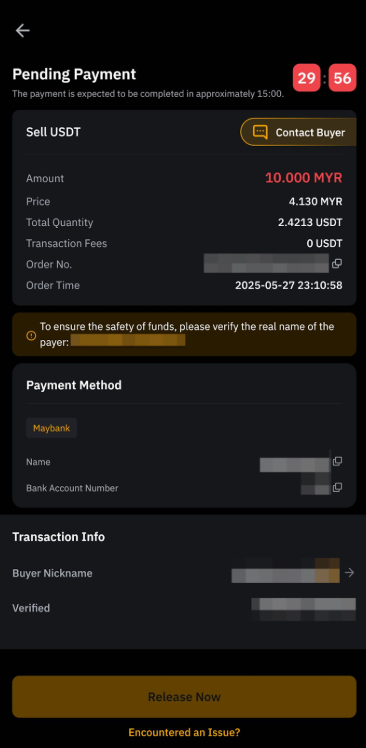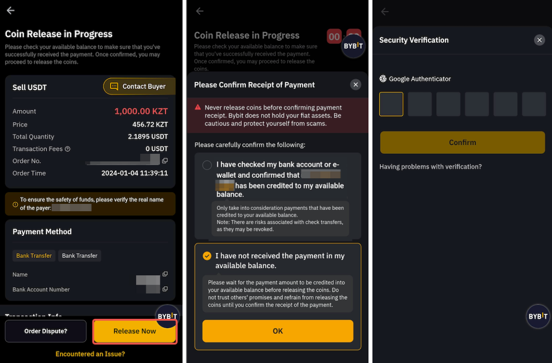 a. Depois de receber o pagamento do comprador, clique em Liberar agora para liberar suas moedas. Será solicitado que você confirme o recebimento do pagamento do comprador. Depois de clicar em Liberar agora, conclua a verificação de segurança para confirmação.