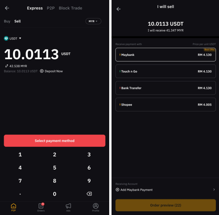 – As transações P2P com moeda fiat serão processadas apenas por meio da conta de fundos, portanto, certifique-se de que seus fundos estejam em sua conta de fundos antes de iniciar uma transação.