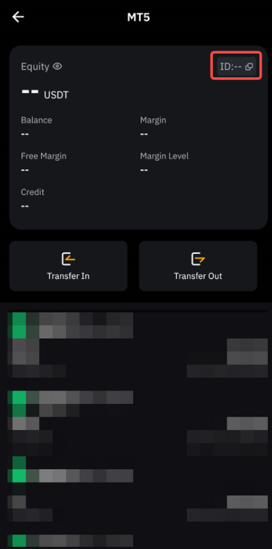 1. A seção de ID de login do MT5 ficará em branco em sua página de ativos do MT5.