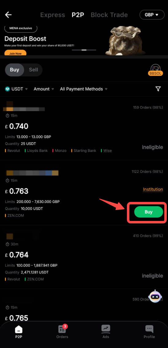 O guia passo a passo a seguir descreve como concluir sua primeira transação P2P usando seu saldo fiat no Bybit.