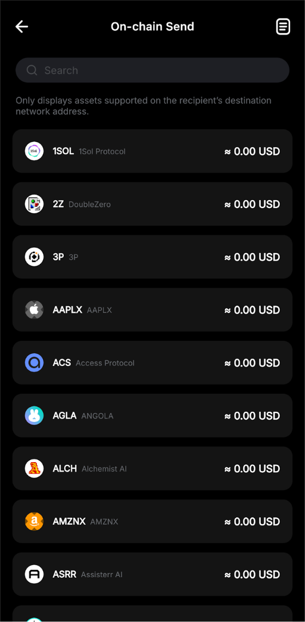 Etapa 3:Selecione a criptomoeda que deseja enviar e escolha sua rede blockchain preferida.