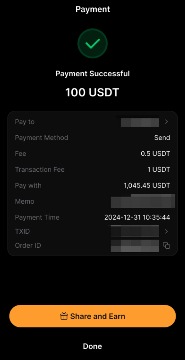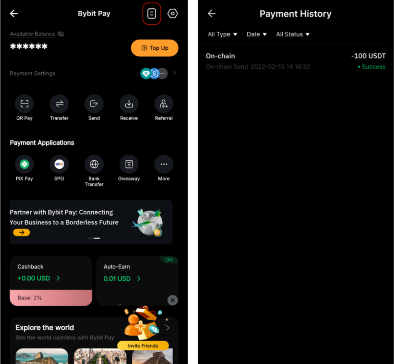Siga as etapas abaixo para iniciar um envio em cadeia no Bybit Pay: