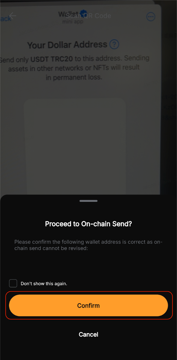 Etapa 5: Revise cuidadosamente todos os detalhes em Enviar confirmação para garantir que tudo esteja correto e, em seguida, toque em Confirmar para concluir a transação.