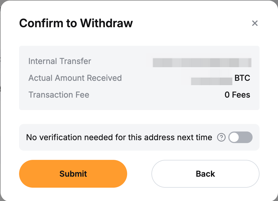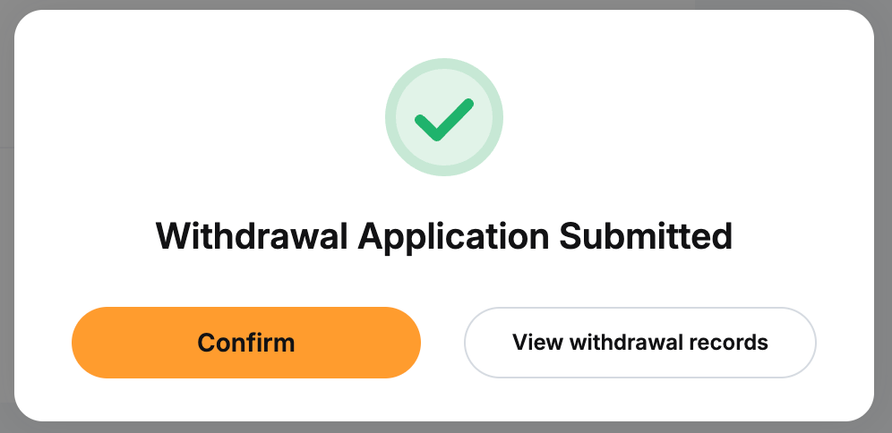 Etapa 3: Clique em Enviar na janela pop-up, e você será direcionado para a página de verificação de retirada.