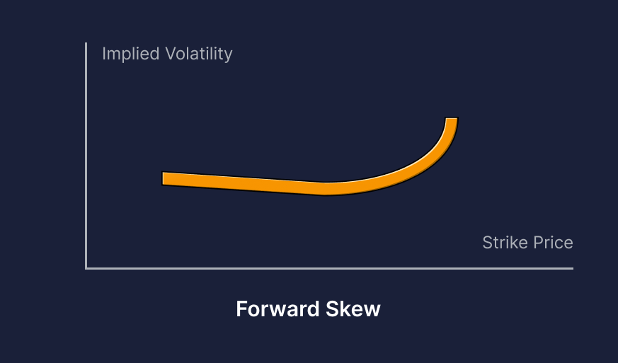 Skew forward: os skews forward ocorrem quando as opções de preço de exercício mais altas têm volatilidades implícitas mais altas do que os strikes mais baixos.