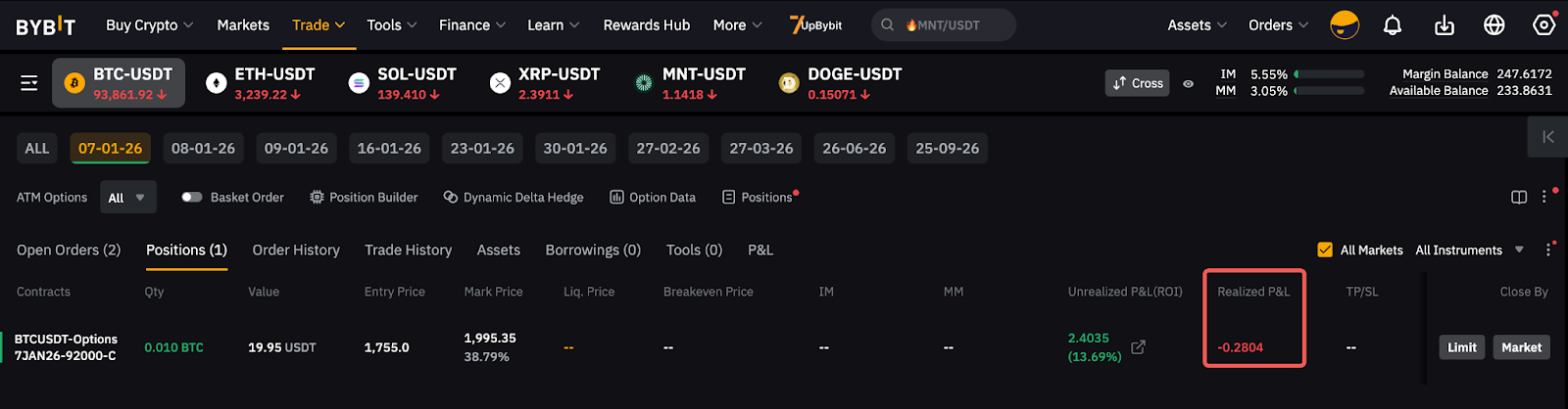 Tenha em atenção que o Bybit suporta USDT Options e o P&L será liquidado em USDT.