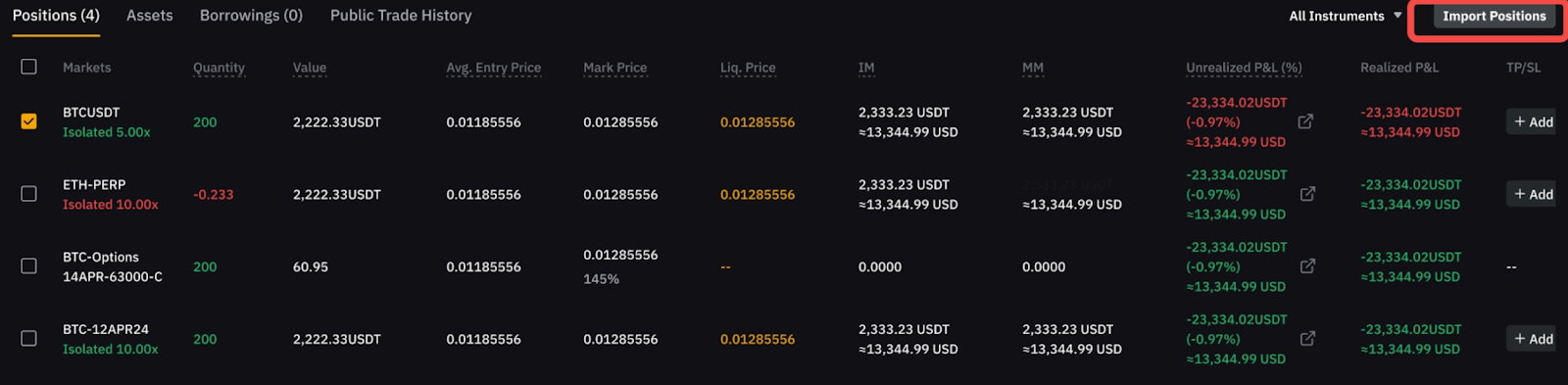 В конструкторе можно отправить RFQ на закрытие существующих позиций с помощью функции Импорт позиции.