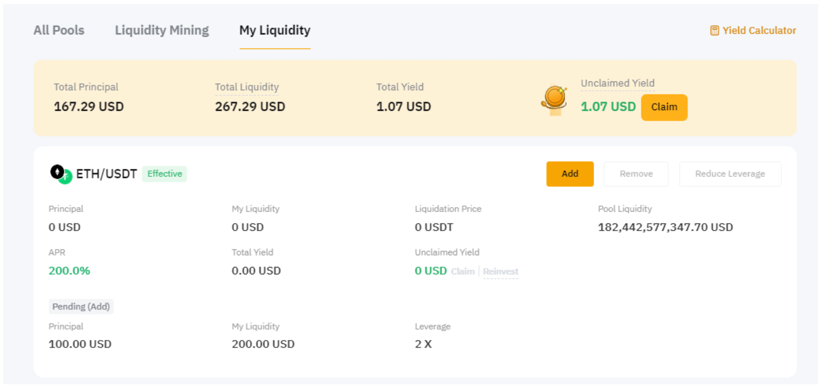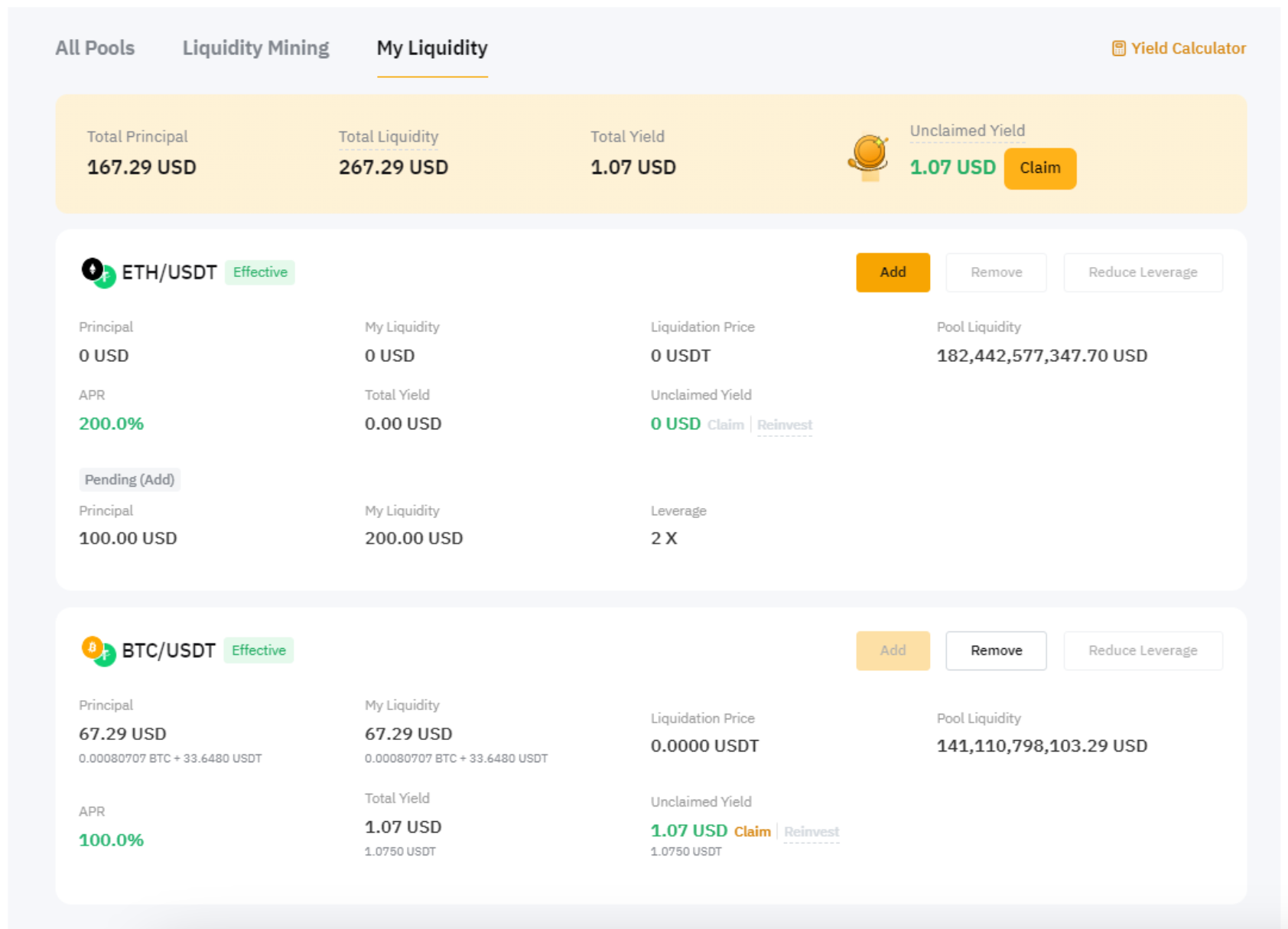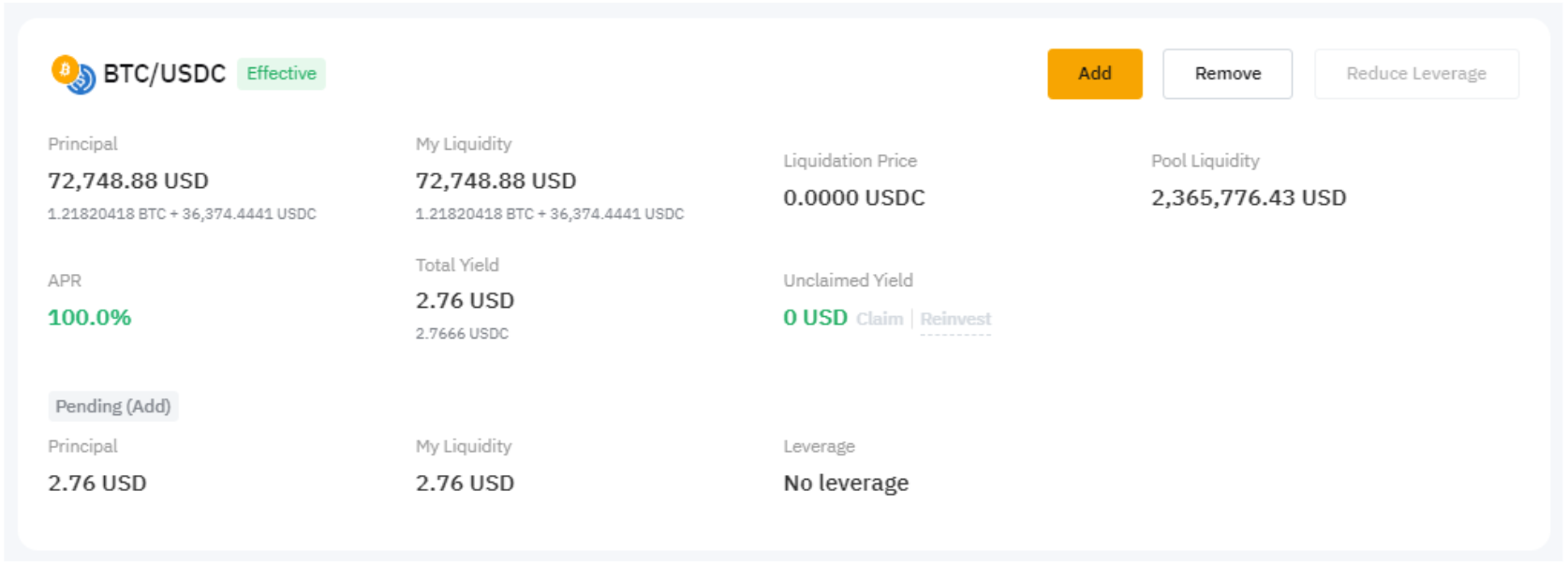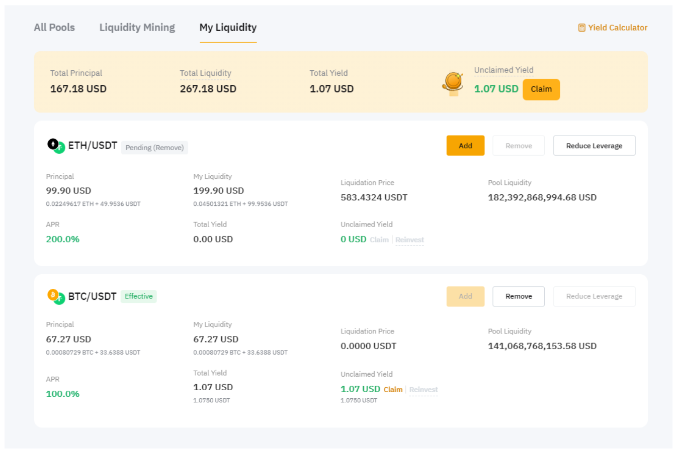 Оттуда можно легко управлять позициями: добавлять больше ликвидности, изымать ликвидность, получать и реинвестировать доход и уменьшать кредитное плечо.