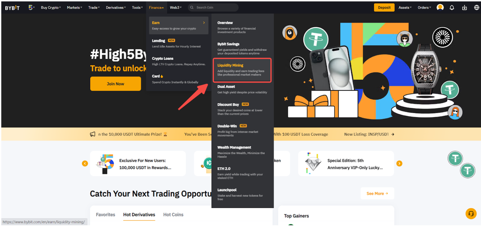 Шаг 1. Нажмите Earn → Майнинг ликвидности на панели навигации, чтобы перейти на страницу Майнинга ликвидности.