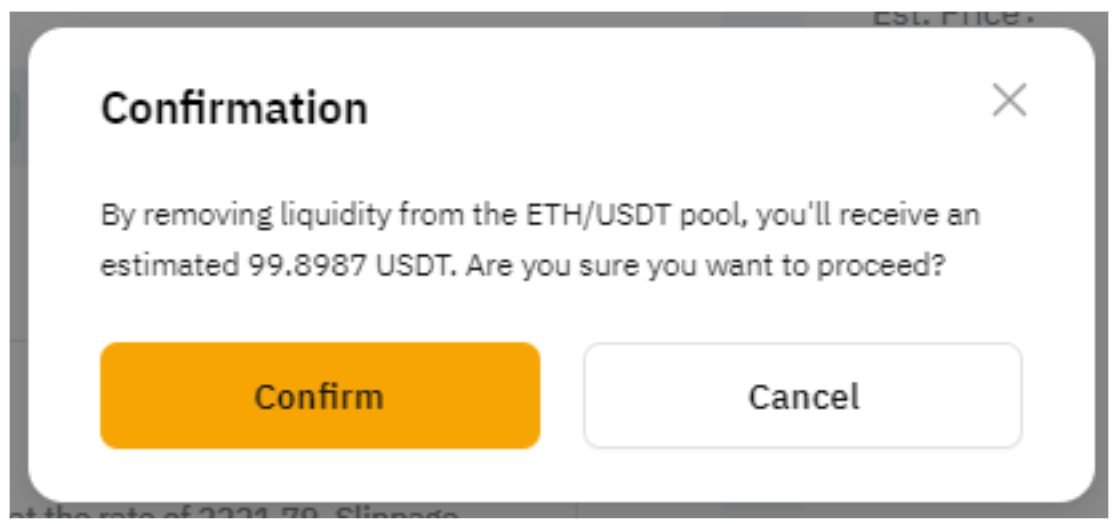Шаг 2. Выберите пул ликвидности для изъятия токенов и проверьте количество токенов, которое вы получите. Пожалуйста, еще раз проверьте детали, а затем нажмите Удалить ликвидность.