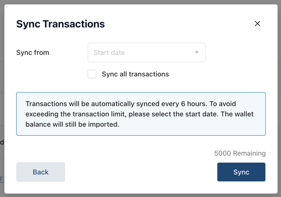 Шаг 7: После подключения Journaler спросит вас, какие кошельки подключить, и позволит выбрать дату начала.
