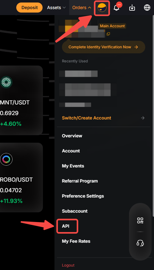 Шаг 1: Войдите в свой аккаунт Bybit и перейдите на страницу Управление API, нажав на значок аккаунта → API.