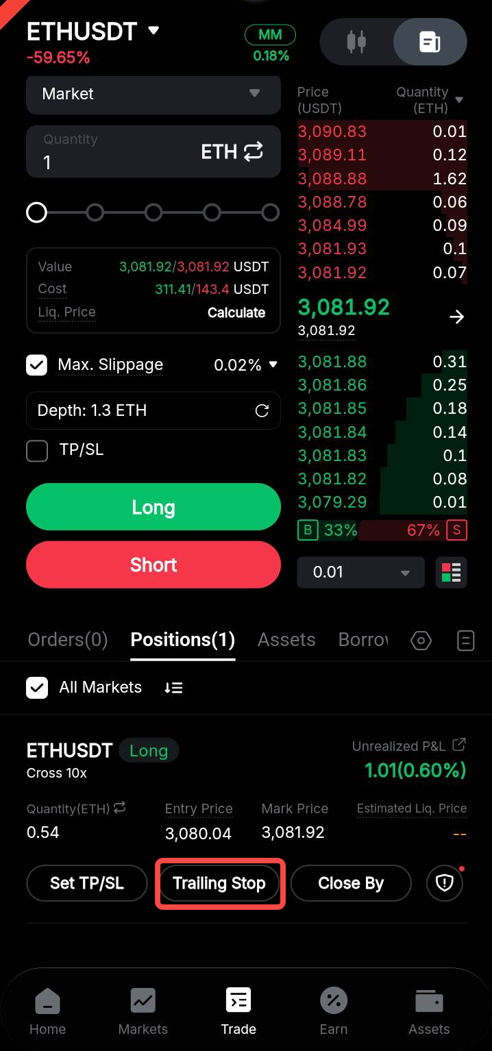 Обратите внимание, что для пользователей приложения Bybit функция Trailing Stop доступна только в приложении версии 4.37.0 и выше.