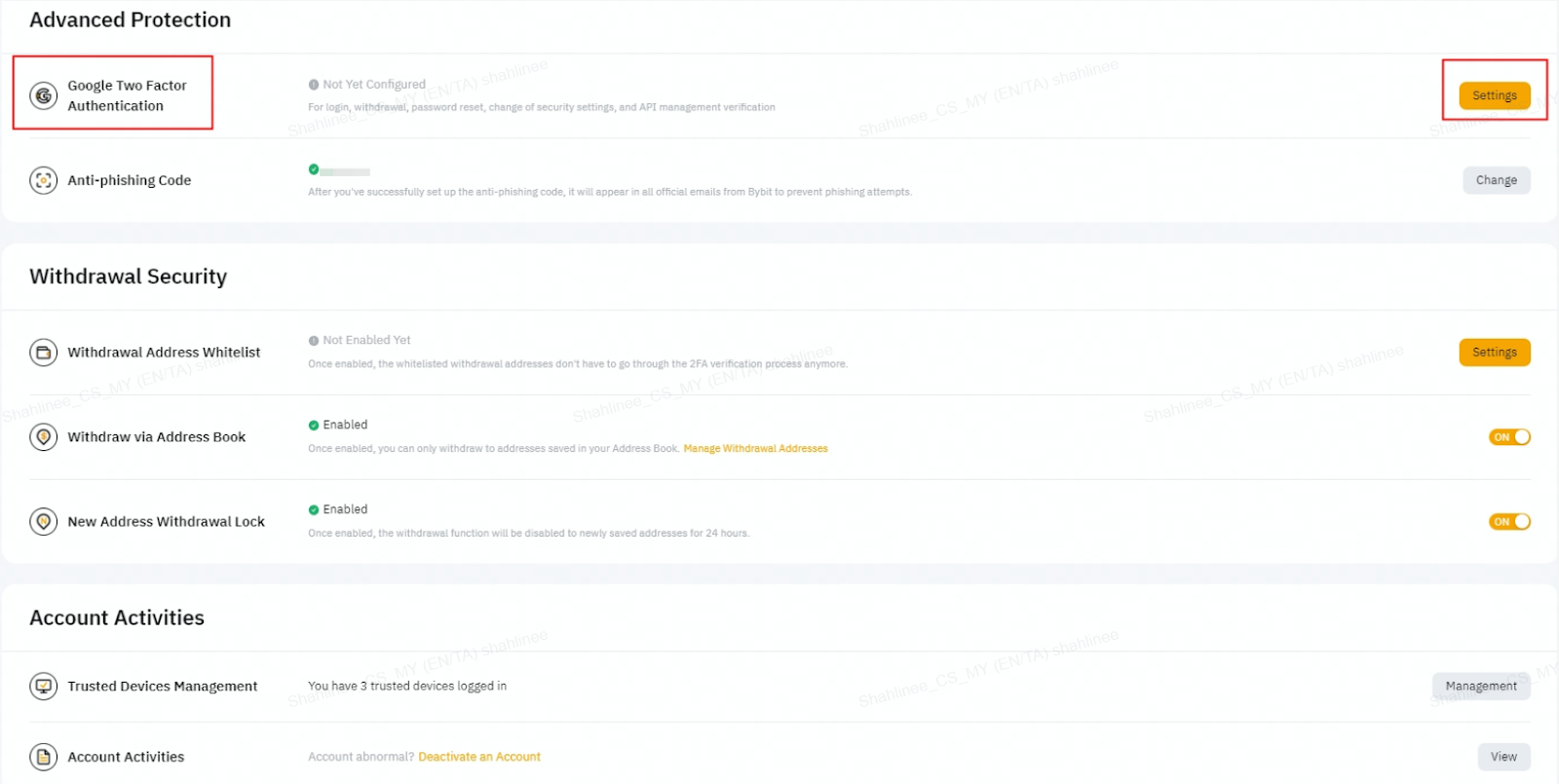 Після ввімкнення цієї функції щойно додану адресу для виведення коштів не можна використовувати протягом наступних 24 годин. Це забезпечує додатковий рівень безпеки і допомагає запобігти несанкціонованому зняттю коштів. Будь ласка, відвідайте цей розділ, щоб дізнатися, як керувати безпекою зняття коштів.